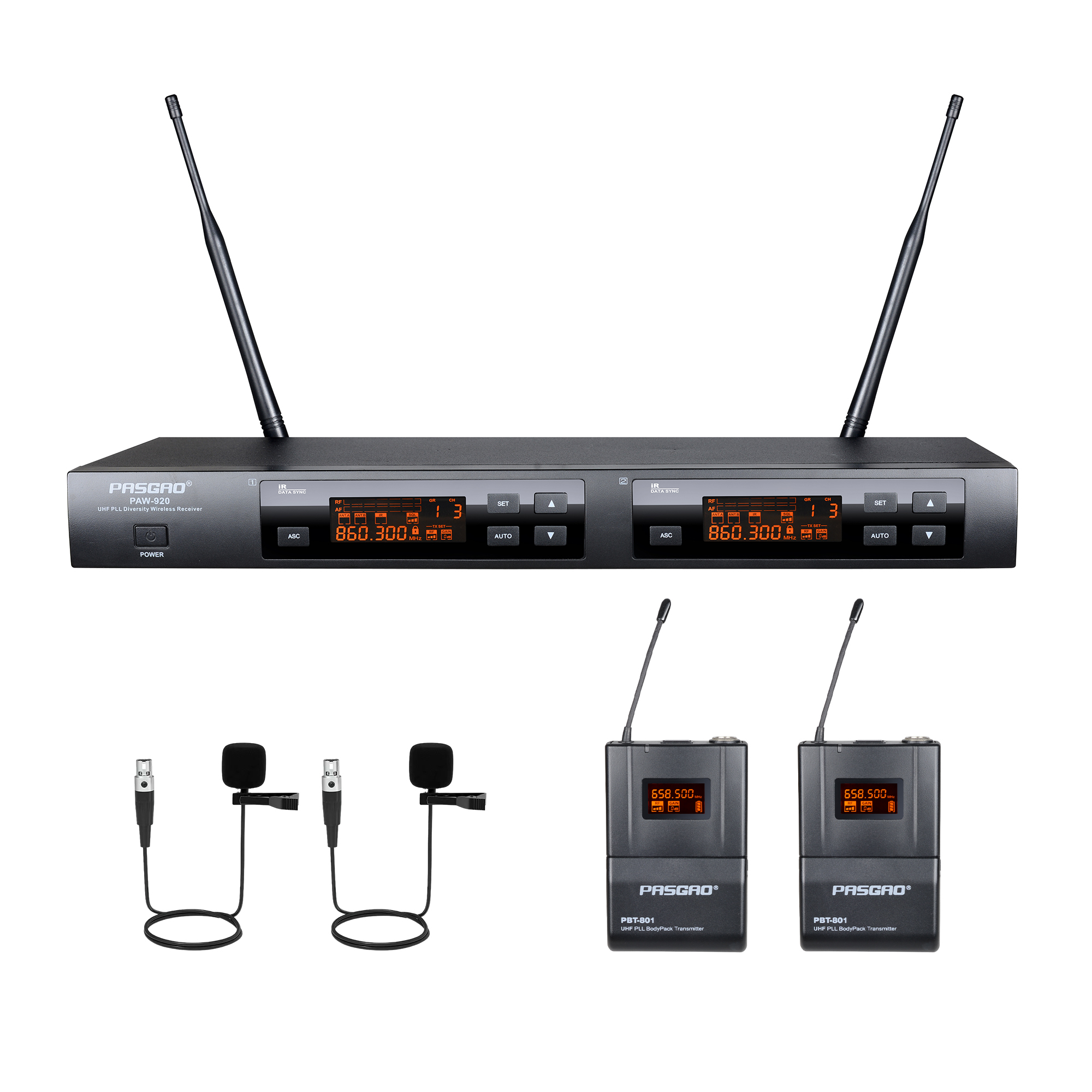 Pasgao PAW-920/2x PBT-801 Радиосистема с двумя поясными передатчиками и петличными микрофонами