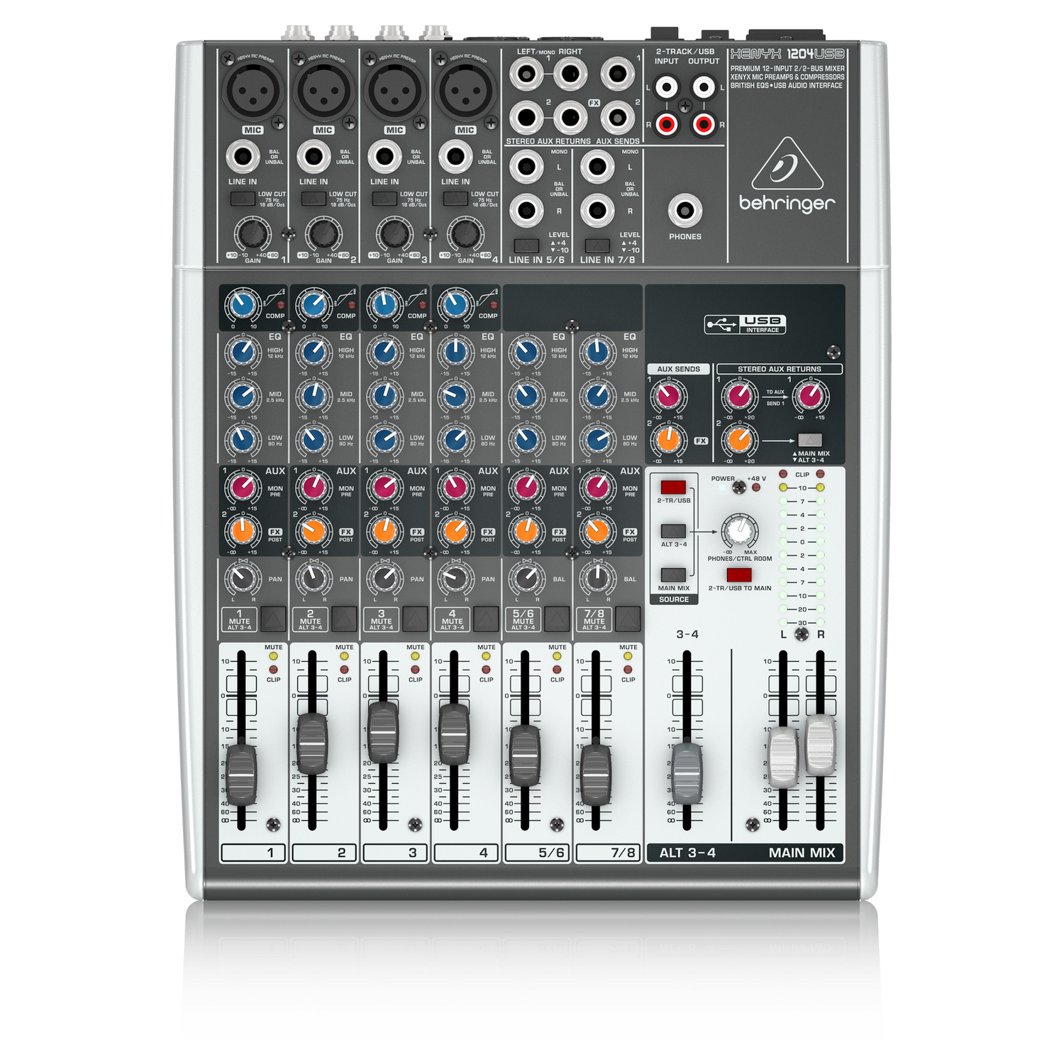 BEHRINGER 1204USB - микшер, 4 моновхода , 2 стереовхода, 2 AUX-шины, USB